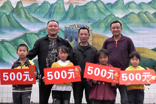 圖為鄭世華(從左邊數(shù)第一個)與自己捐助的貧困生合影。